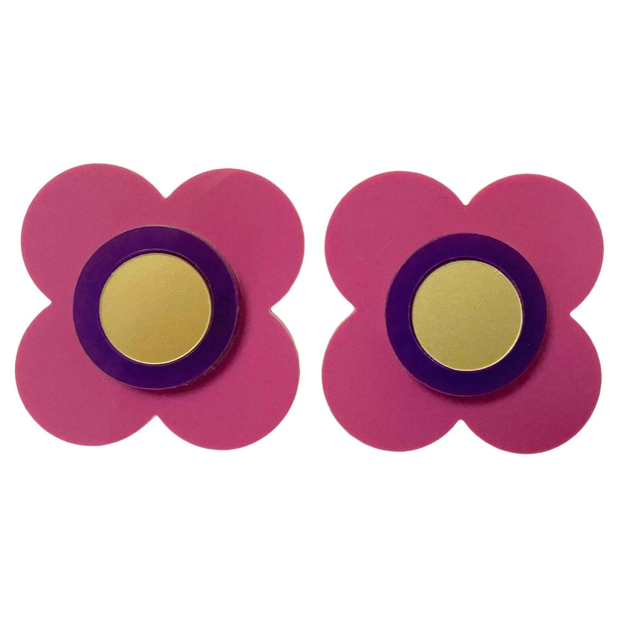 - High gloss acrylic cut out flower in orange, purple and yellow