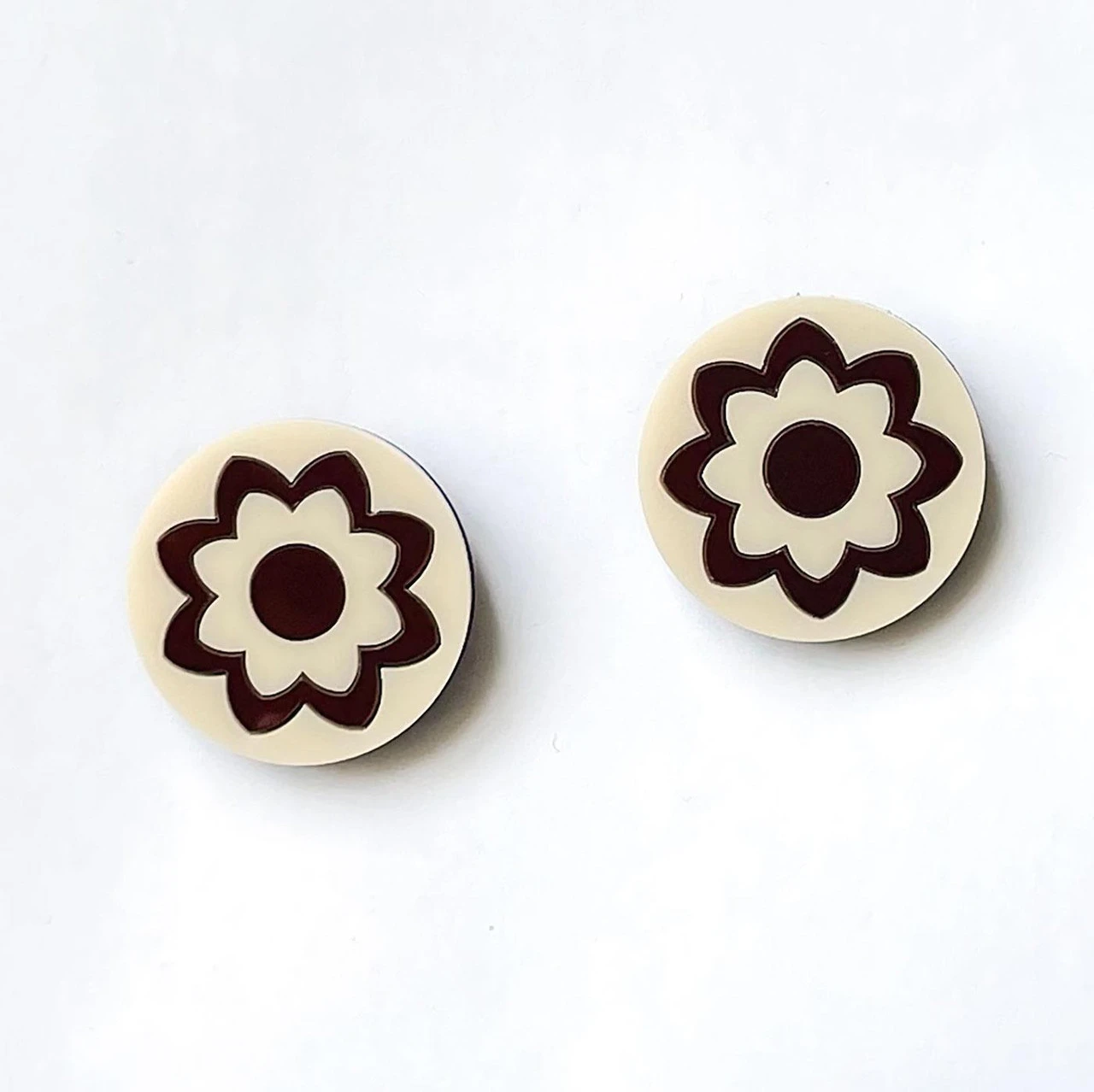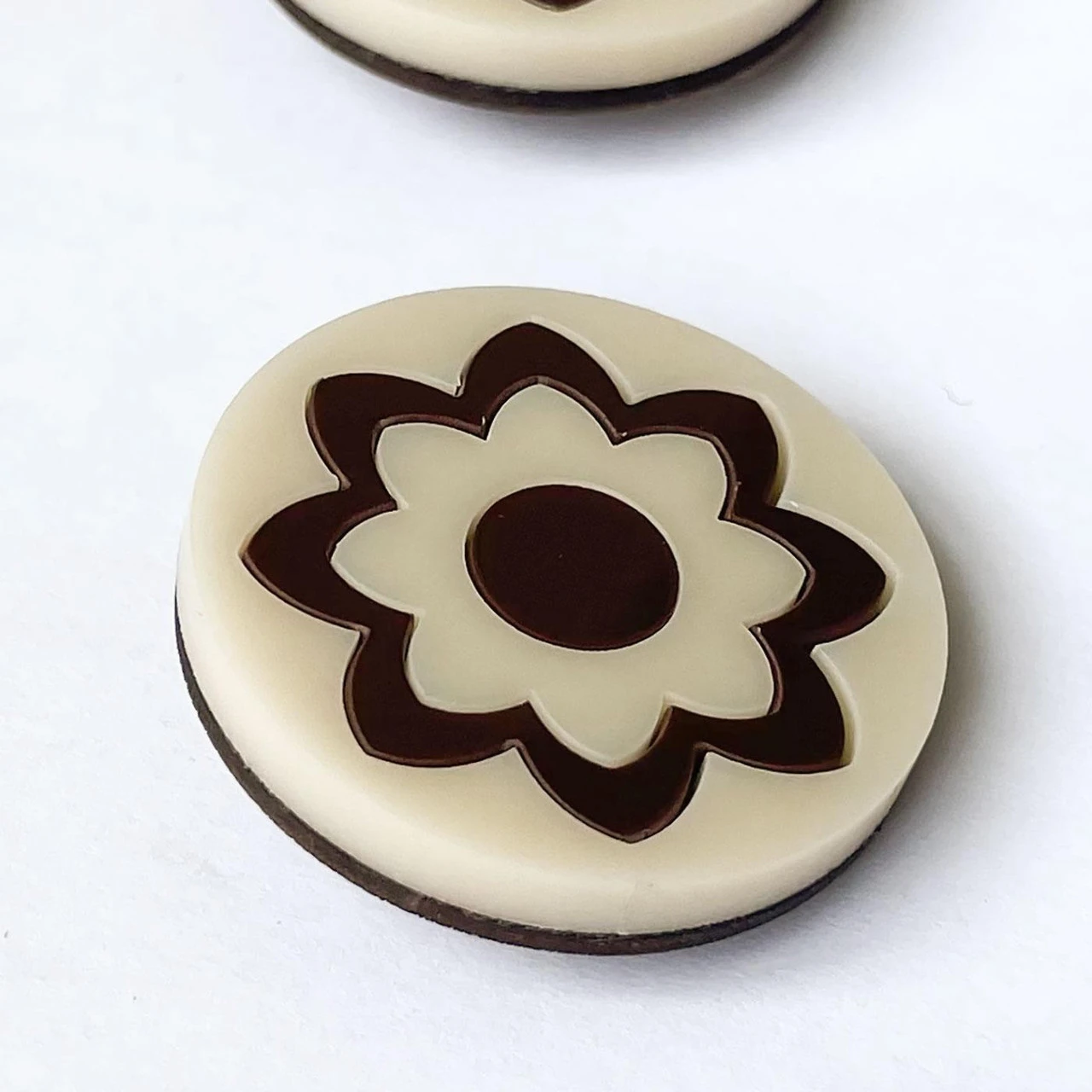 - High gloss acrylic circular flower in cream and brown