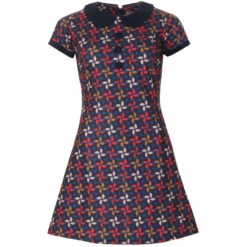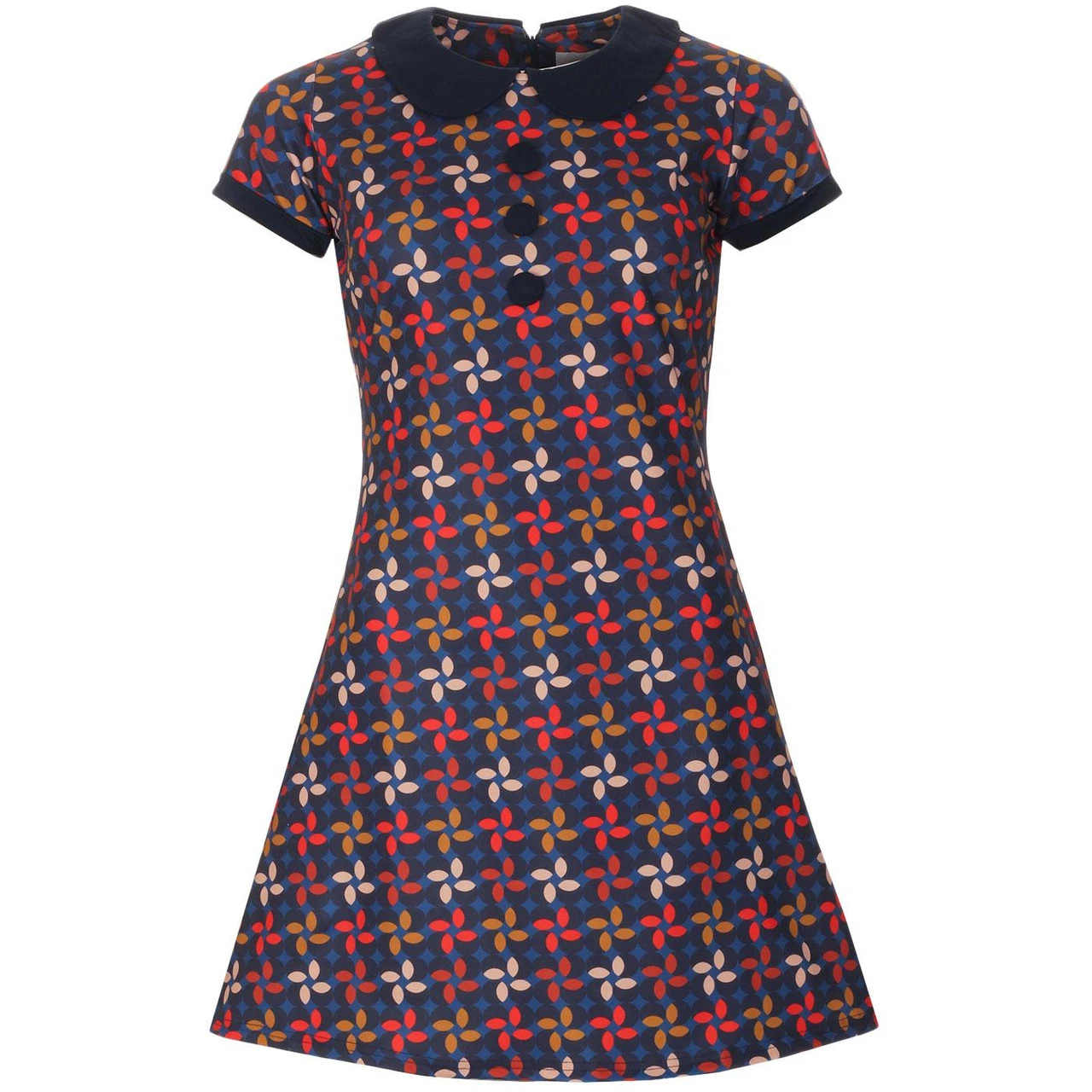 - Madcap England Dollierocker Retro Petals 1960s mod Peter Pan collar dress.