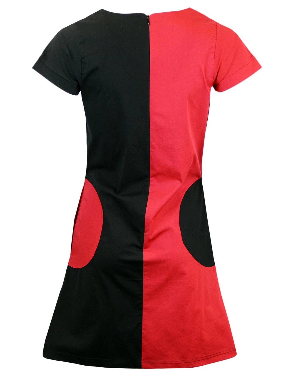 Key Points: Madcap England ‘Honey’ block panel airline dress with circle pockets. A-line mini dress with zip to back, short sleeves and rounded neckline.