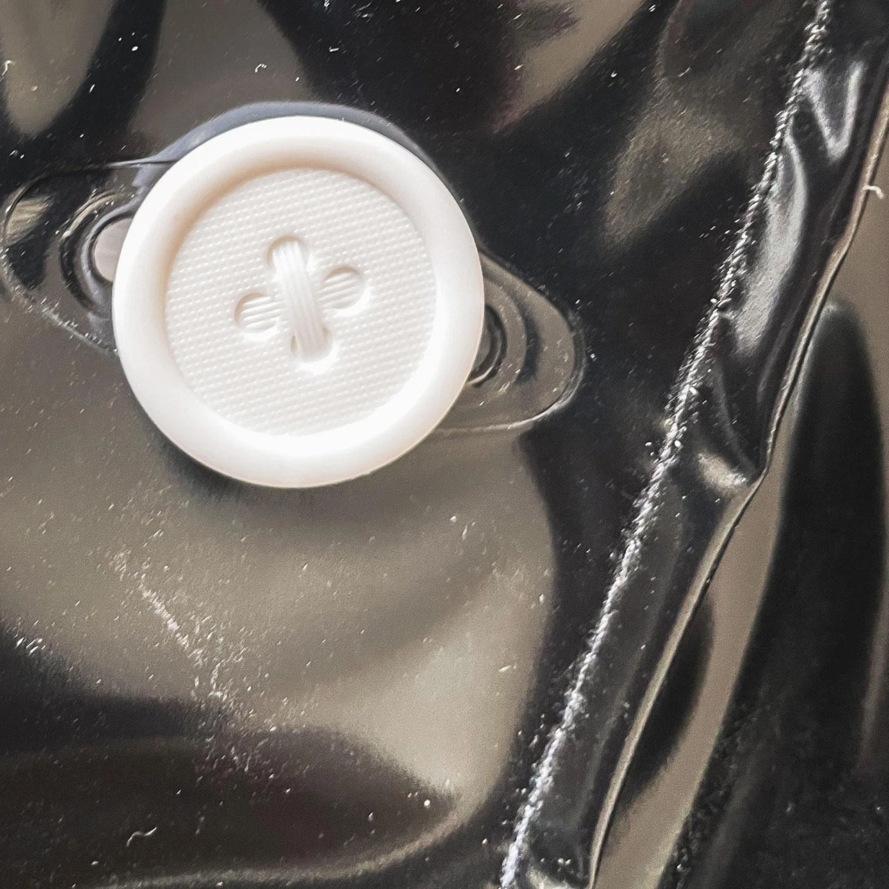 - Maroon (purple) PVC with contrast black buttons and stitching.