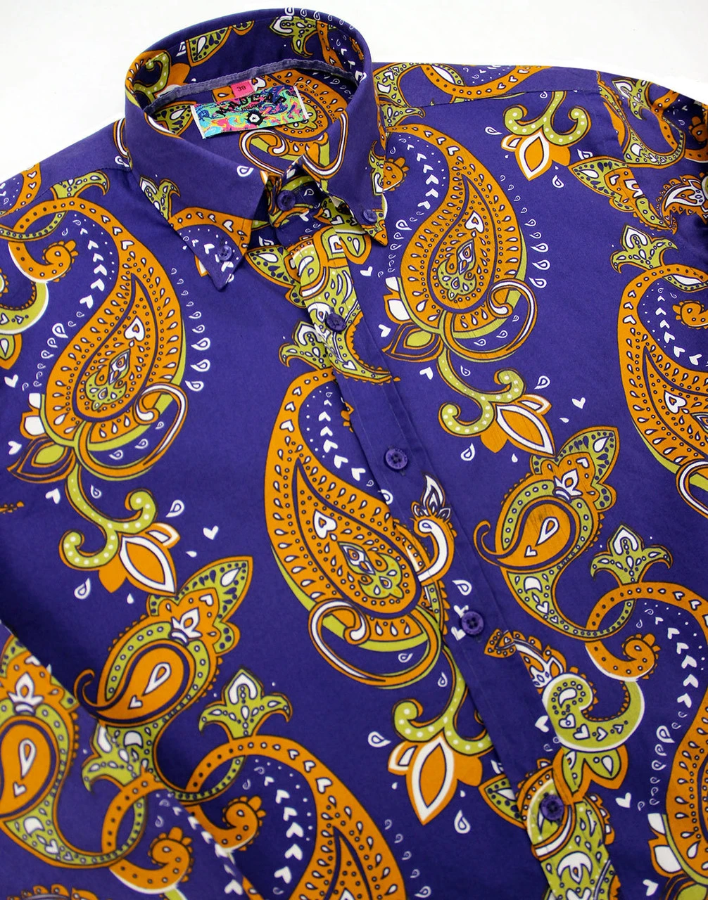 – Madcap England ‘Tanpura Paisley Trip’ 60s Mod button down shirt.