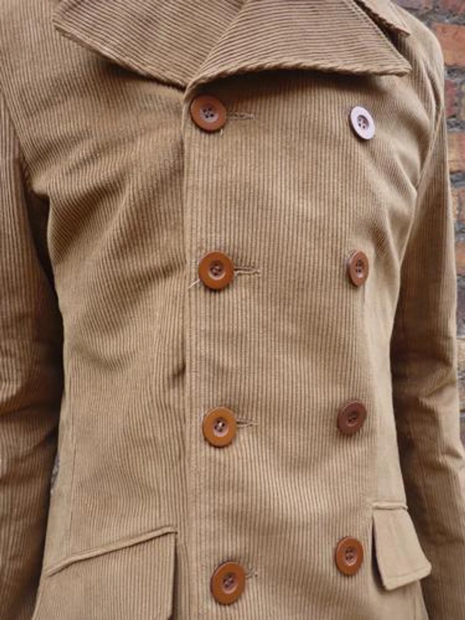 ‘THE RARE BREED’ MENS RETRO MOD SUIT JACKET by MADCAP ENGLAND – Based on the Original Design by Velvet Illusion’s Michael Wolf. Immaculate Camel corduroy, double breasted, Brian Jones style Mens tailored jacket. Contrast lined, concealed inside pocket. Two flap pockets, superb retro, Mod rounded peak lapel detail with obligatory 60s/70s inspired oversized collar.