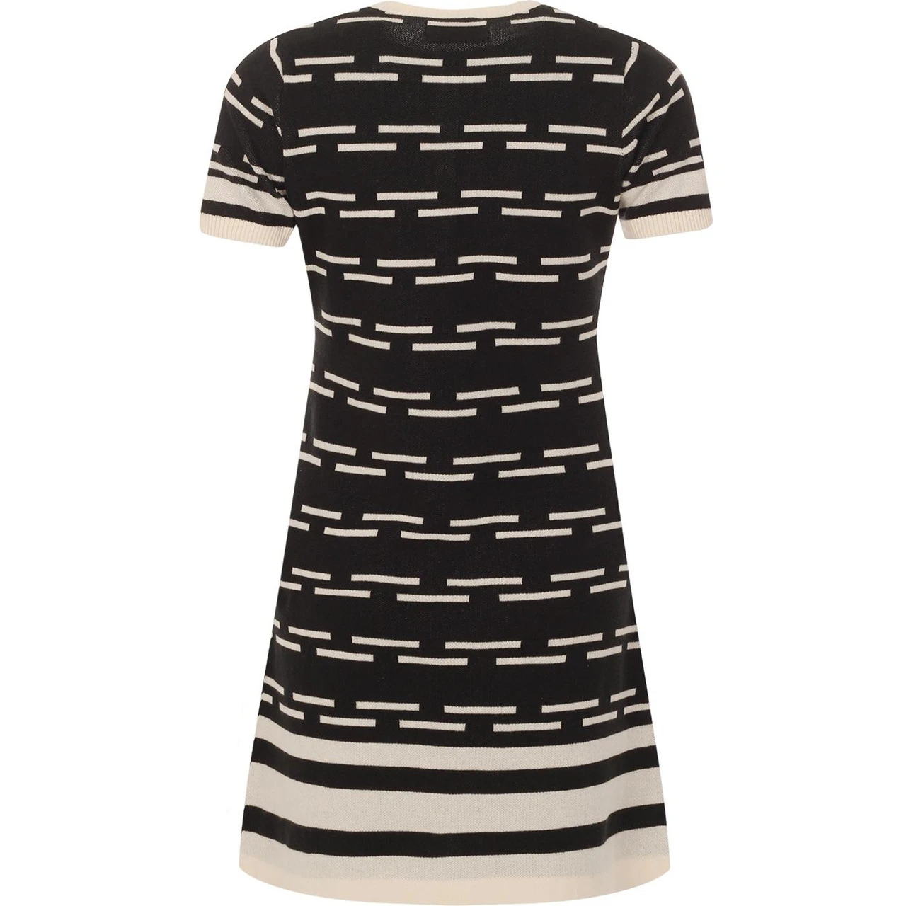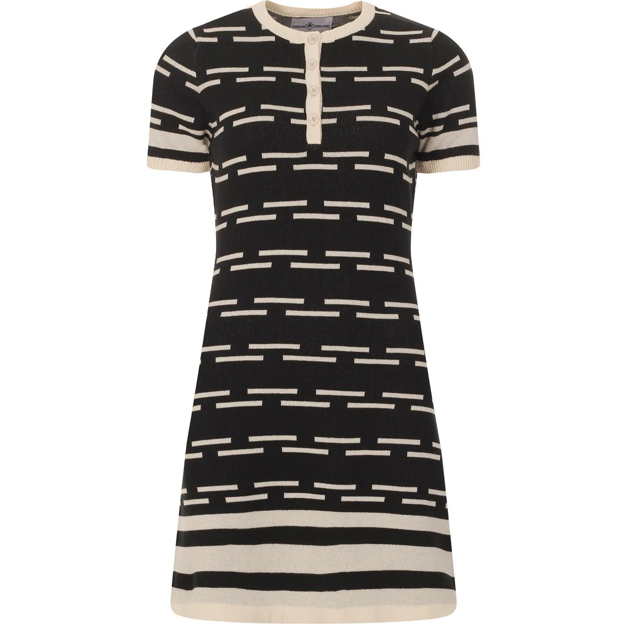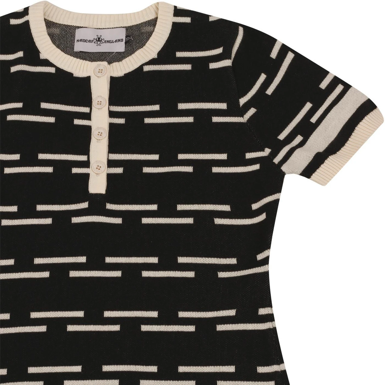 - Abstrast dash broken stripes to body with contrasting stripes in off white to skirt hem and sleeve